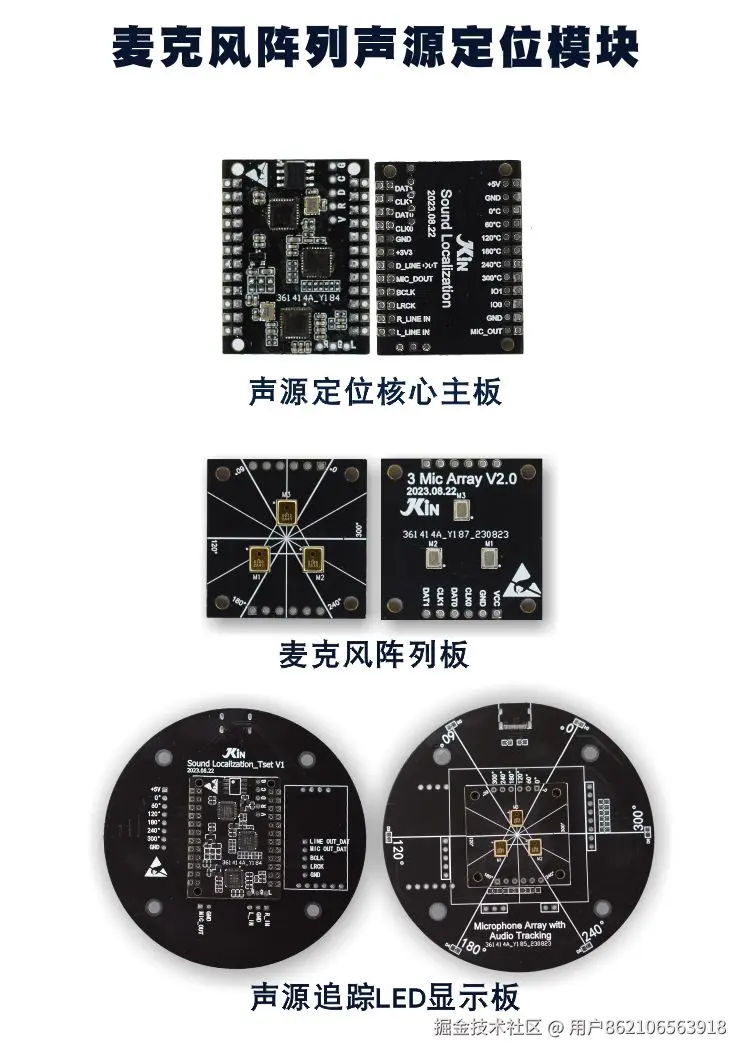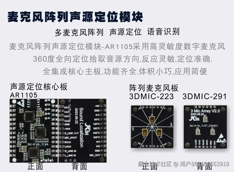 麦克风阵列板: 麦克风阵列是由一定数目的声学传感器(麦克风)按照一定规则排列的多麦克风系统,而基于麦克风阵列的声源定位是指用麦克风拾取声音信号,通过对麦克风阵列的各路输出信号进行分析和处理,得到一个或者多个声源的位置信息