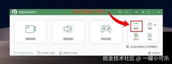 第1步:电脑有录屏吗?开启录屏功能的操作如下。找到电脑桌面的 “数据 蛙录屏软件” 并点击打开,此时界面会显示多种录制模式,本次操作以 “窗口录制” 为例进行说明。