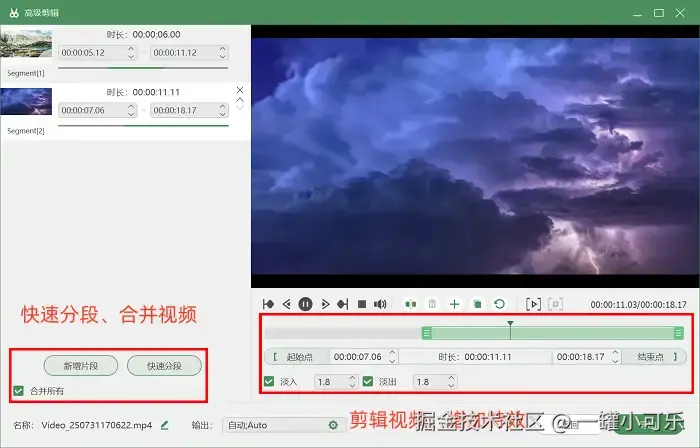 第3步:录制结束后,软件会自动弹出已录制好的视频预览窗口,在该窗口中,你能够对视频进行基础剪辑,比如删除不需要的片段、添加视频特效等。