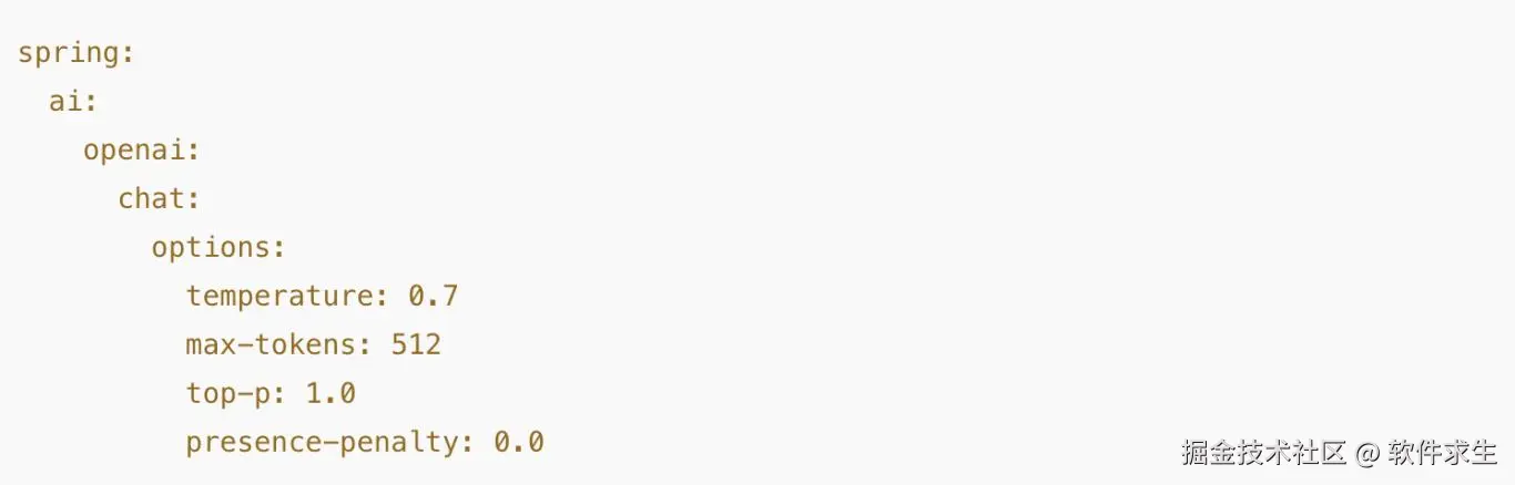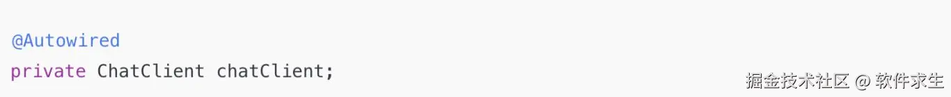 再加上前面那个 base-url,Spring AI 会自动给你注入一个 ChatClient,你就可以像调用 Bean 一样用它了。