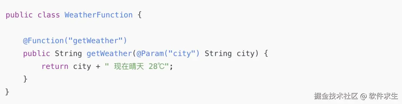 假设我们定义了一个函数,让 AI 调用它来获取天气数据: