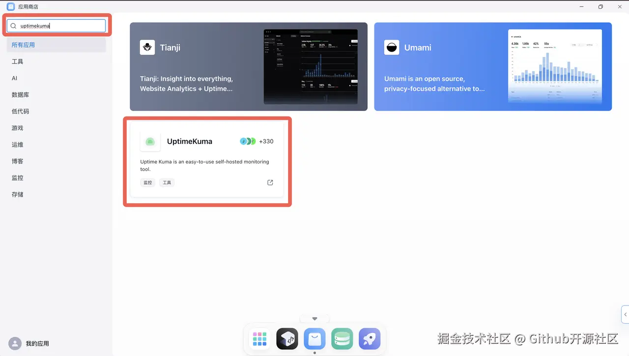 你不仅可以用它来部署 Uptime Kuma,还可以去探索商店里更多有趣、有用的开源应用。