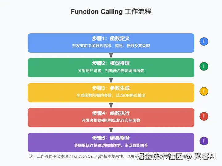 Function Calling 是一种强大的工具,它为大语言模型提供了与外部工具和服务交互的能力,从而解决了大模型知识更新停滞的问题。然而,它的局限性在于缺乏跨模型的一致性和平台依赖性。尽管如此,Function Calling 仍然是一个重要的技术,尤其是在需要快速实现特定功能时。未来,随着技术的不断发展,我们期待看到更多能够克服这些局限性的解决方案。
