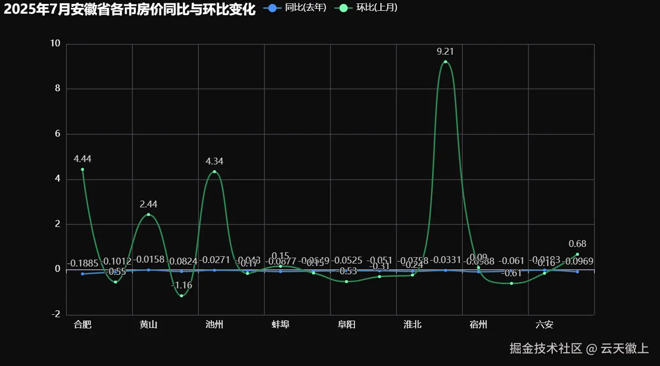 在房地产市场中,房价一直是人们关注的焦点。2025年7月,安徽省各市的房价情况如何?哪些城市的房价较高?哪些城市的房价同比和环比变化较大?本文将通过Python和pyecharts库,对2025年7月安徽省各市房价情况进行深度解析和可视化展示。