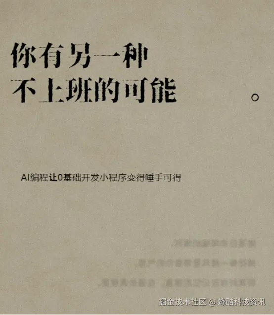 这条路不是躺赢,需要学习和实践。但它起点足够低,反馈足够快,可能性足够清晰。它让我开始认真思考,或许,“不上班”不是指完全不工作,而是用AI赋予的新能力,更自主地选择解决什么问题、为谁创造价值、以及如何安排自己的时间。