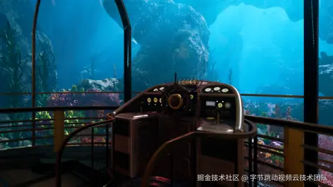《最后的特提斯之海》VR 展中,火山引擎提供云 VR LBE 技术方案。云 VR 大空间体验是采用实时云渲染技术,并利用虚拟现实技术创建的广阔、沉浸式虚拟环境,用户仅需佩戴 VR 一体机,就可以在其中自由移动、探索和交互,享受高度真实感和无缝衔接的沉浸式体验。
