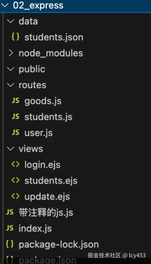 展示学生列表的路由我们放在了student.js路由文件中。其他的只是展示一个res.send('user路由')仅此而已。