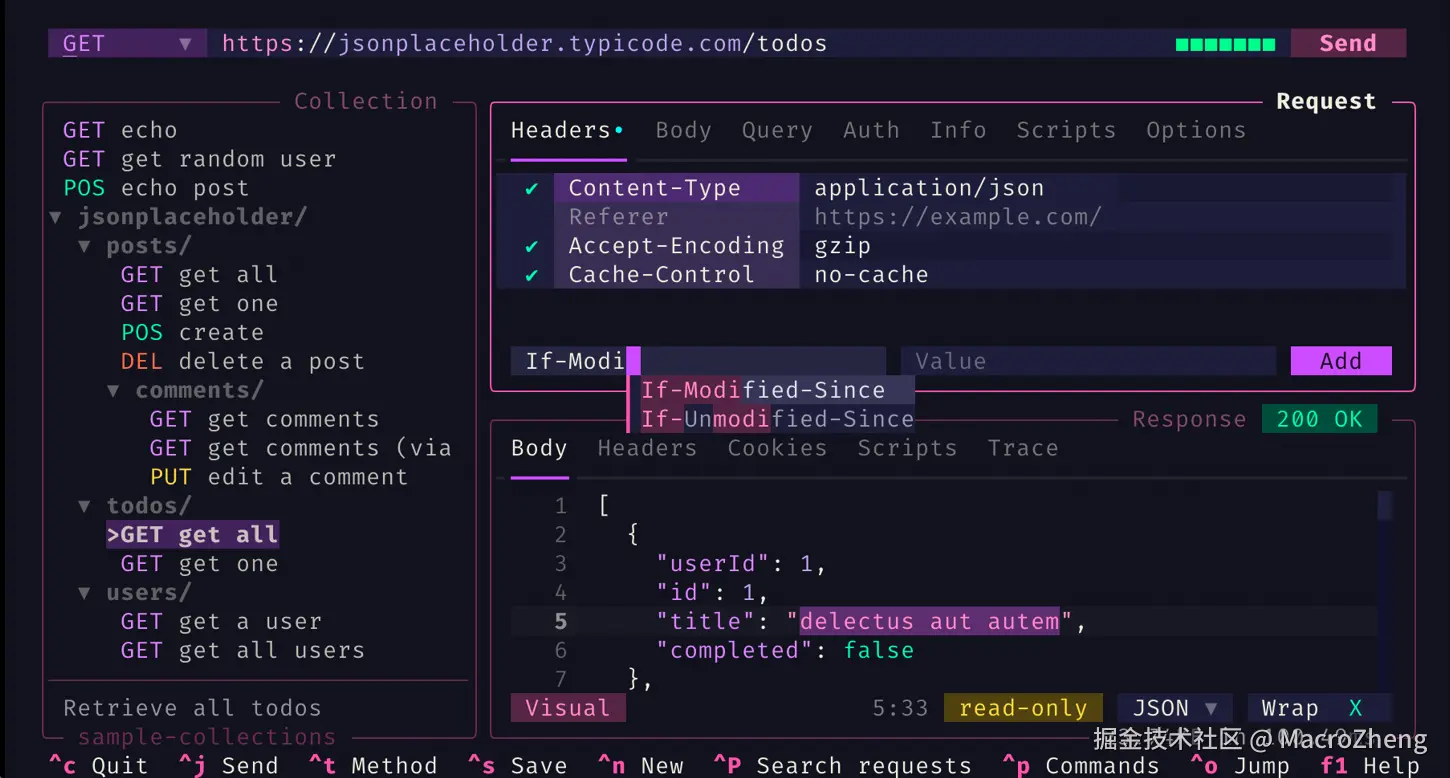 - 自动补全:支持大多数HTTP相关指令的自动补全;