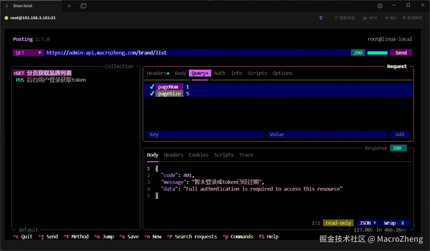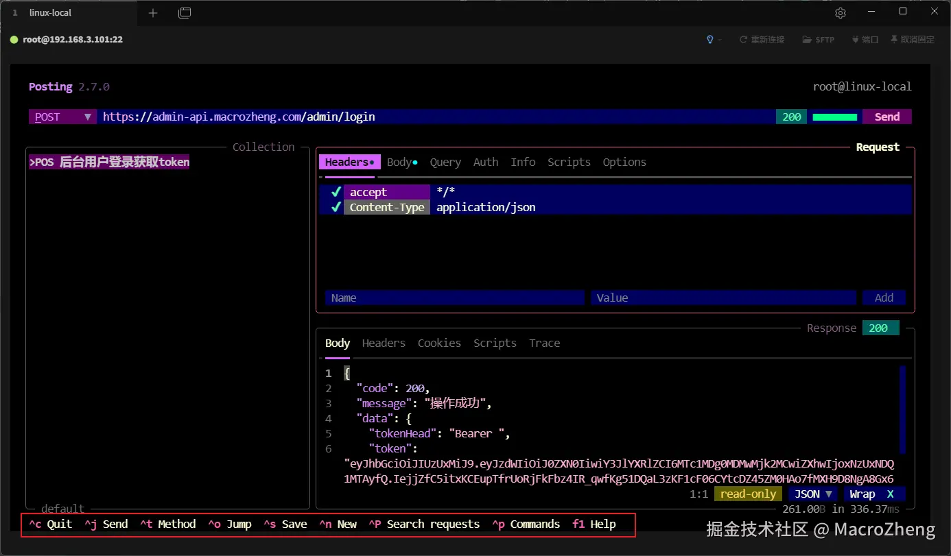 作为开发人员,我们工作中经常会使用Postman这类接口调试工具。最近发现一款非常有意思的接口调试工具Posting,能在终端中调试接口,试用了一下,感觉界面非常炫酷,推荐给大家!
