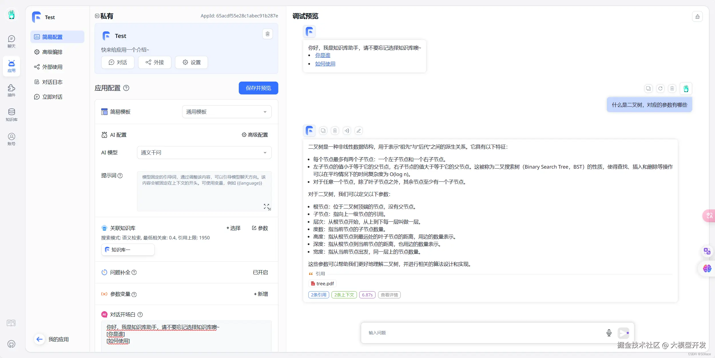 此时语言模型对话内容中,就可以穿插自己定义的知识库内容了,还可以发布、预览