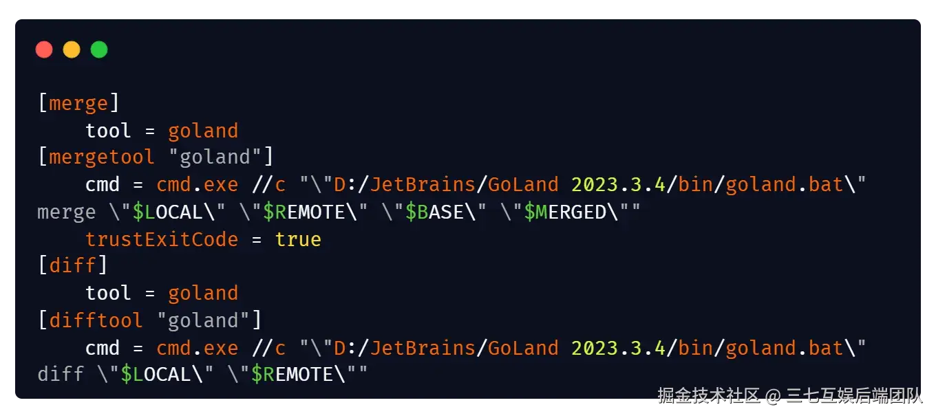 这里参考了其他的文档关于git mergetool的使用方法,配置goland作为合并冲突解决工具:gist.github.com/rambabusara…