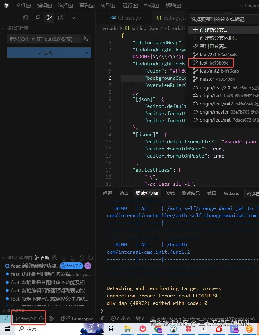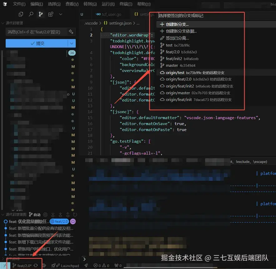 点击左上角的git分支标识,可以查看具体变更,支持单个文件回退更改等功能。