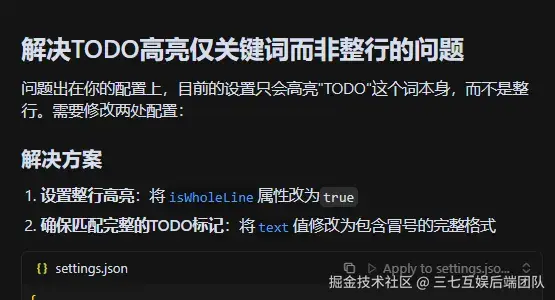 以解决TODO高亮问题为例,展示如何通过AI解决配置问题: