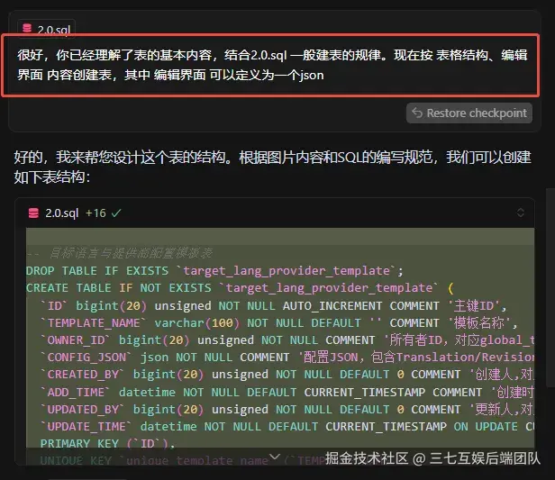 AI会根据已有的SQL文件格式自动调整生成的SQL风格,大部分情况下只需进行轻微调整。