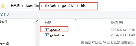 3、在本地安装go后,找到对应目录并选择go可执行文件