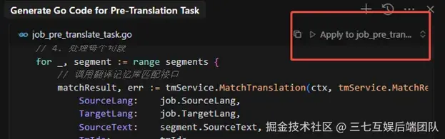 通过右上角的Apply按钮,将AI生成的代码同步回原文件: