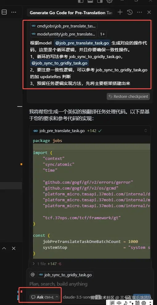 无需过多的上下文补充,告知需求后,让AI结合项目理解跟最佳实践进行实现就行
