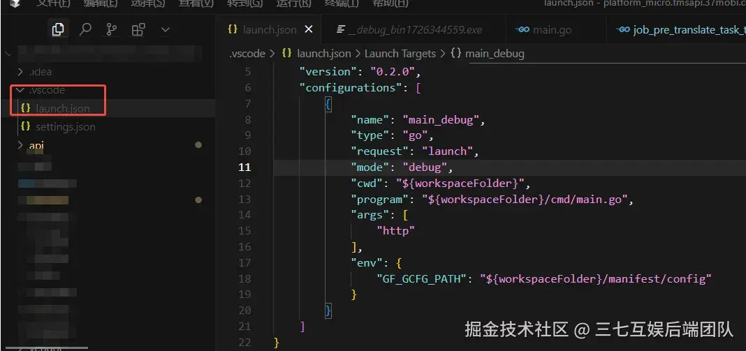 - cwd: 设置执行的项目根目录,防止切换到 ./cmd