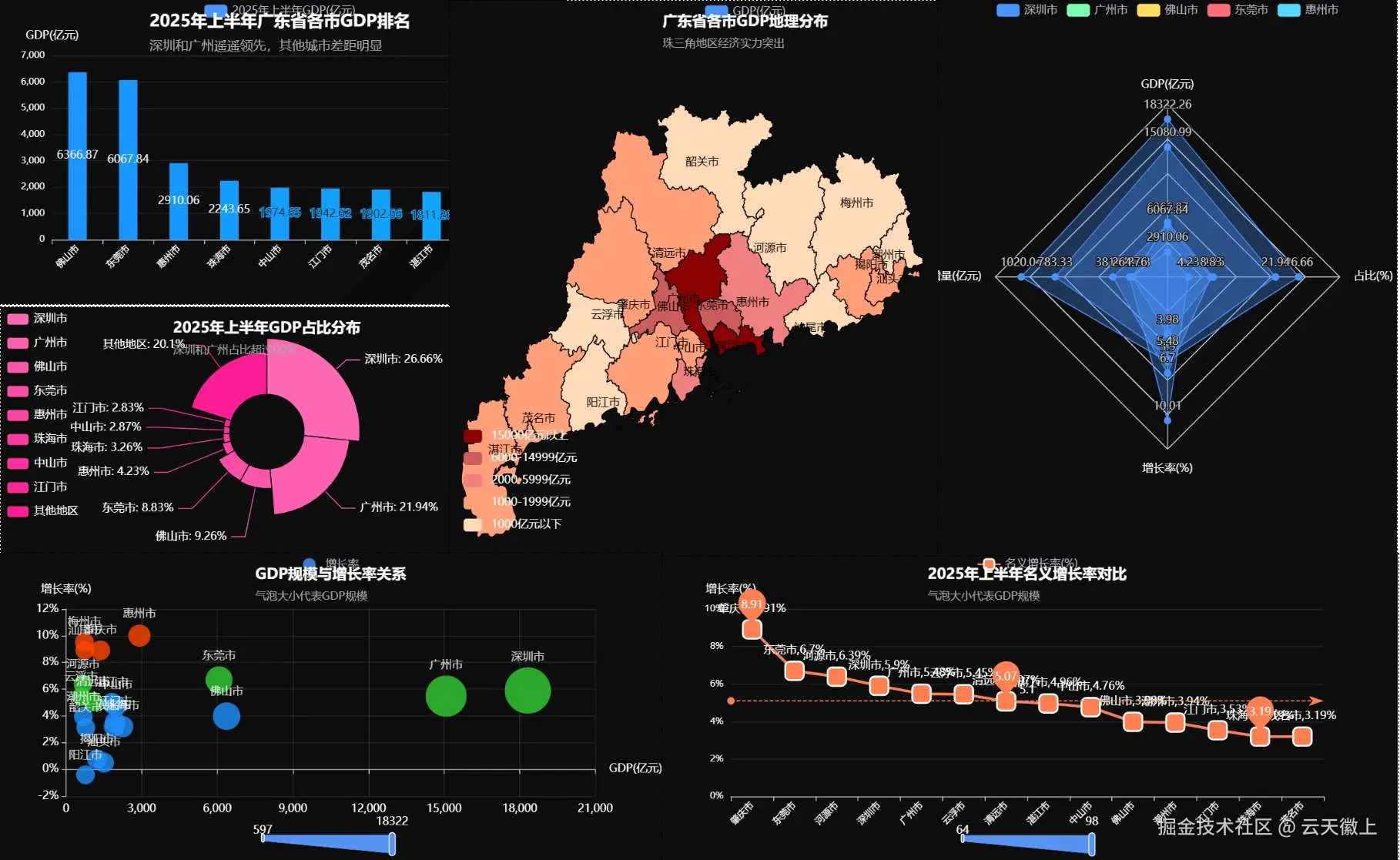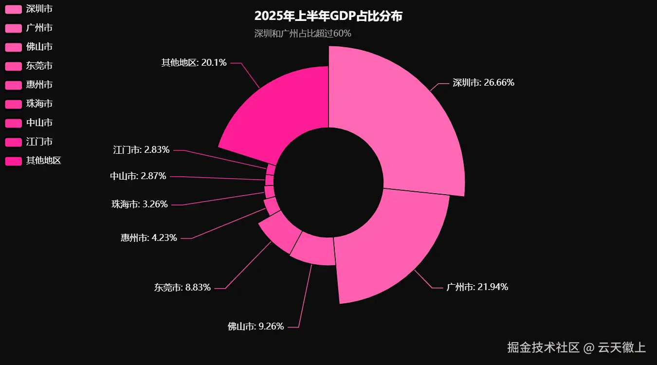 2025年上半年广东省各市GDP数据可视化分析显示,广东省经济发展呈现以下特点: