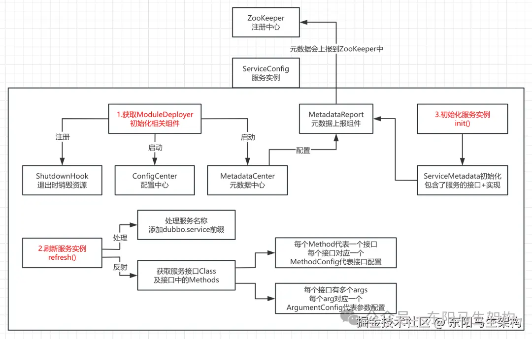 //Dubbo服务实例启动后,会有自己的元数据,需要上报到一个地方进行管理,比如zookeeper