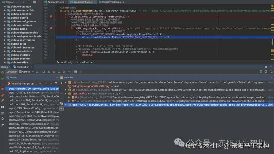 //此外,ServiceConfig的export()方法还会把自己作为一个服务实例注册到zk里