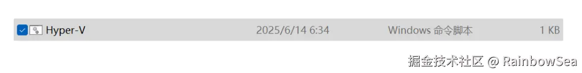首先需要创建一个cmd文件,可以命名如下:“Hyper-V.cmd”