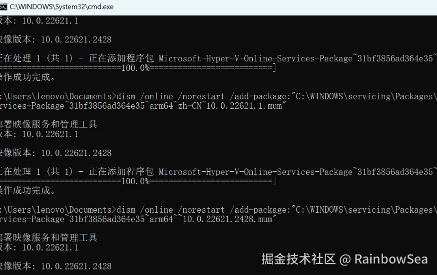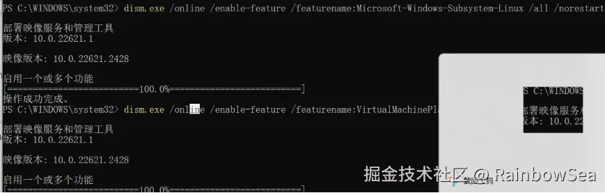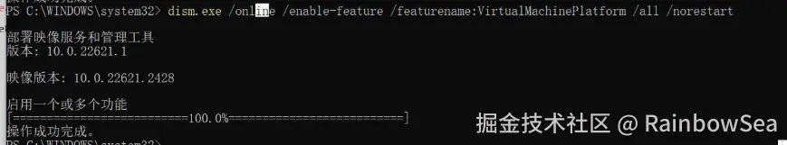 dism.exe /online /enable-feature /featurename:VirtualMachinePlatform /all /norestart