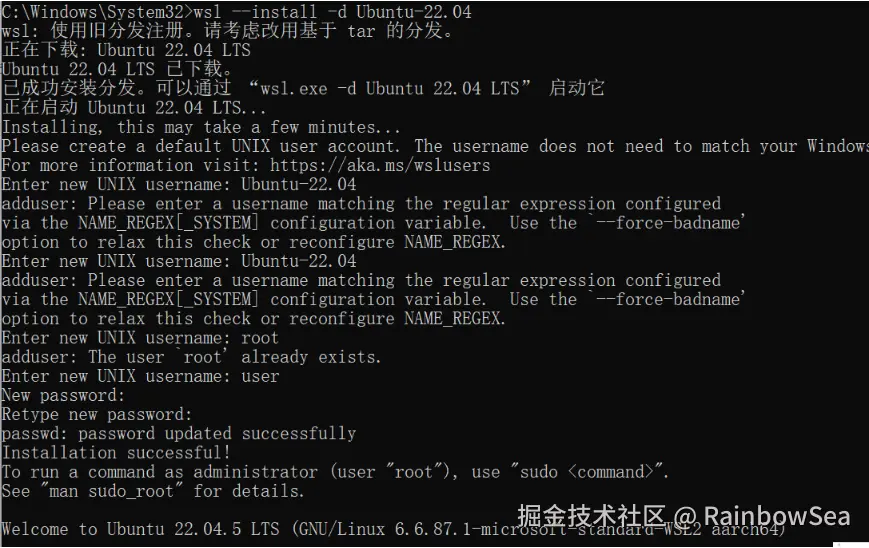 我们一般选择最新的Ubuntu即可,通过如下指令执行安装:(同样可能需要魔法上网才行)