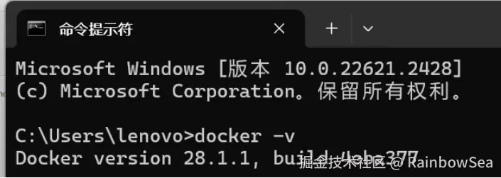 打开cmd命令行,输入docker -v,如果此时能正常显示对应的docker 版本,则对应的安装成功。