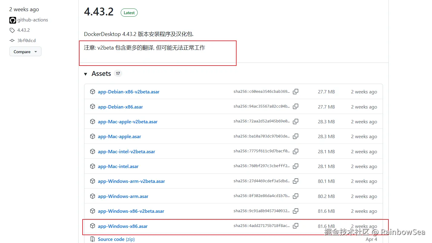 前往以下 GitHub 仓库获取对应系统的 Docker Desktop 安装包和汉化包:(注意下载你对应 Docker DeskTop 版本的汉化包)