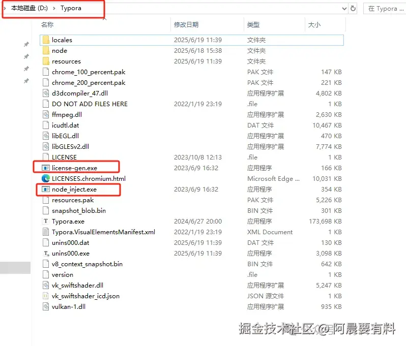 把解压出来的两个 exe 文件复制到 Typora 的安装目录下,默认路径为:C:\Program Files\Typora,如安装在其他路径,请自行替换。