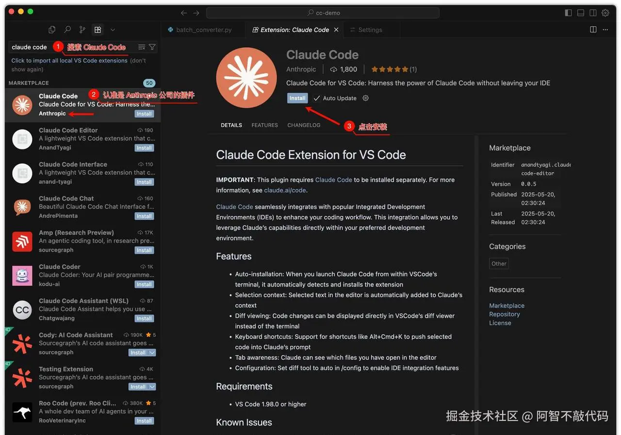 - 安装插件:搜索“Claude Code”,认准Anthropic官方版本,点击安装即可。