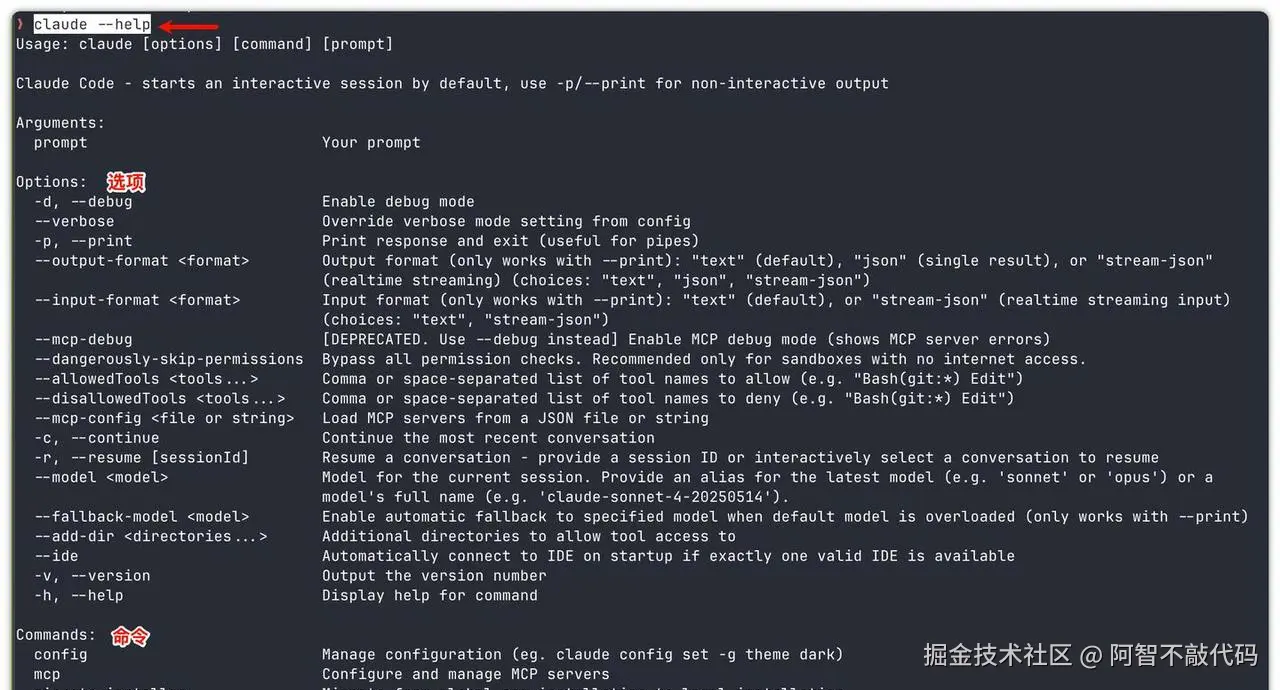 想快速上手?从claude --help开始。这个命令会列出所有可用参数和命令,比如-p用于非交互式输出、-c继续最近的对话、--model指定模型等。记住常用参数能让操作效率翻倍,比如用claude -r恢复历史会话,或--output-format json导出结构化结果。