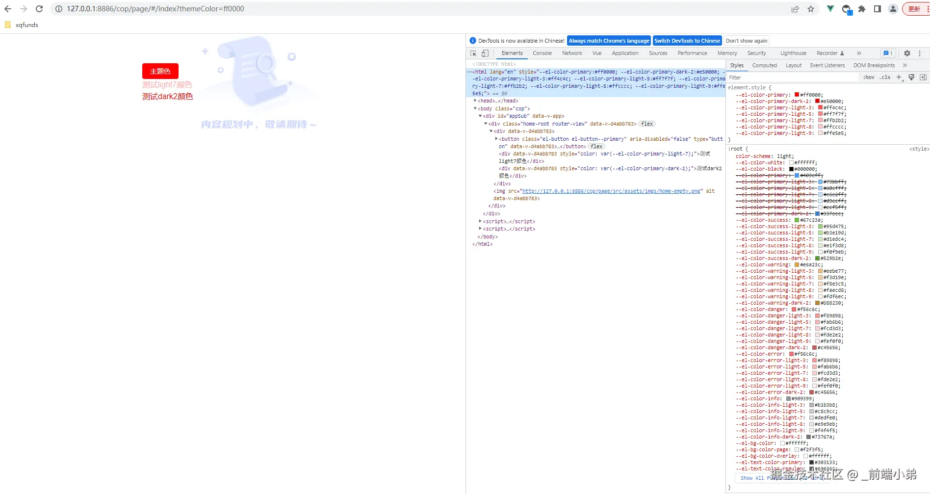 开发环境:由于没有做到严格的样式隔离,父项目定义的变量和样式会被子项目获取到,所以阴差阳错的导致子页面会和父框架主题色相同