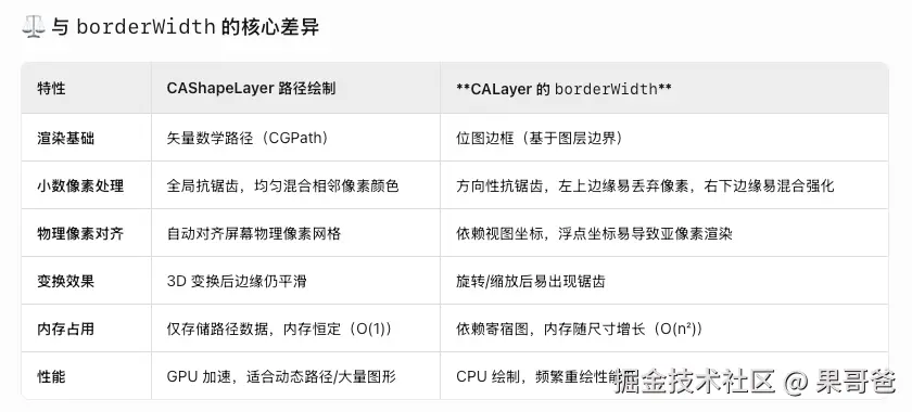 答案是通过CAShapeLayer 矢量路径绘制用矢量路径替代边框,精确控制每一条边。