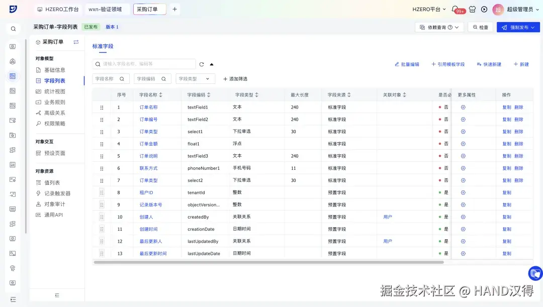 零代码是一种无需编写代码,通过可视化拖拽、配置操作,即可实现应用搭建的页面模式。在飞搭最新发布的低代码功能中,借助该模式,能够高效完成数据管理、表单设计及流程自动化等功能开发,自动生成业务对象数据模型,自动创建列表页面,显著降低技术门槛与开发时间成本。