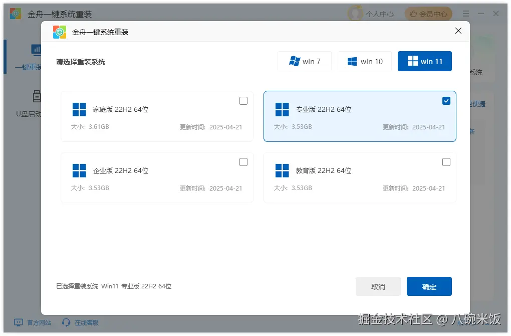 工具:金舟一键系统重装