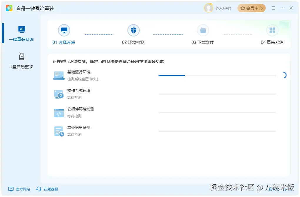 Step3、软件会根据你选择的系统检测当前环境,是否符合重装条件