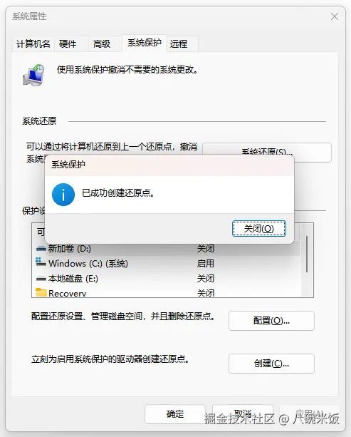 Step1、打开电脑【设置】-【系统属性】-【系统保护】,创建系统还原点