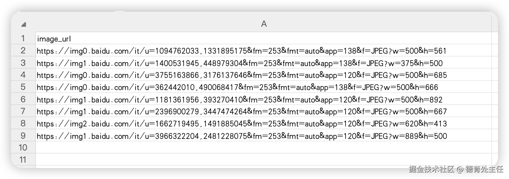 我准备了一批数据来验证,这几张图都是以 url 的方式存储在 Excel 中。