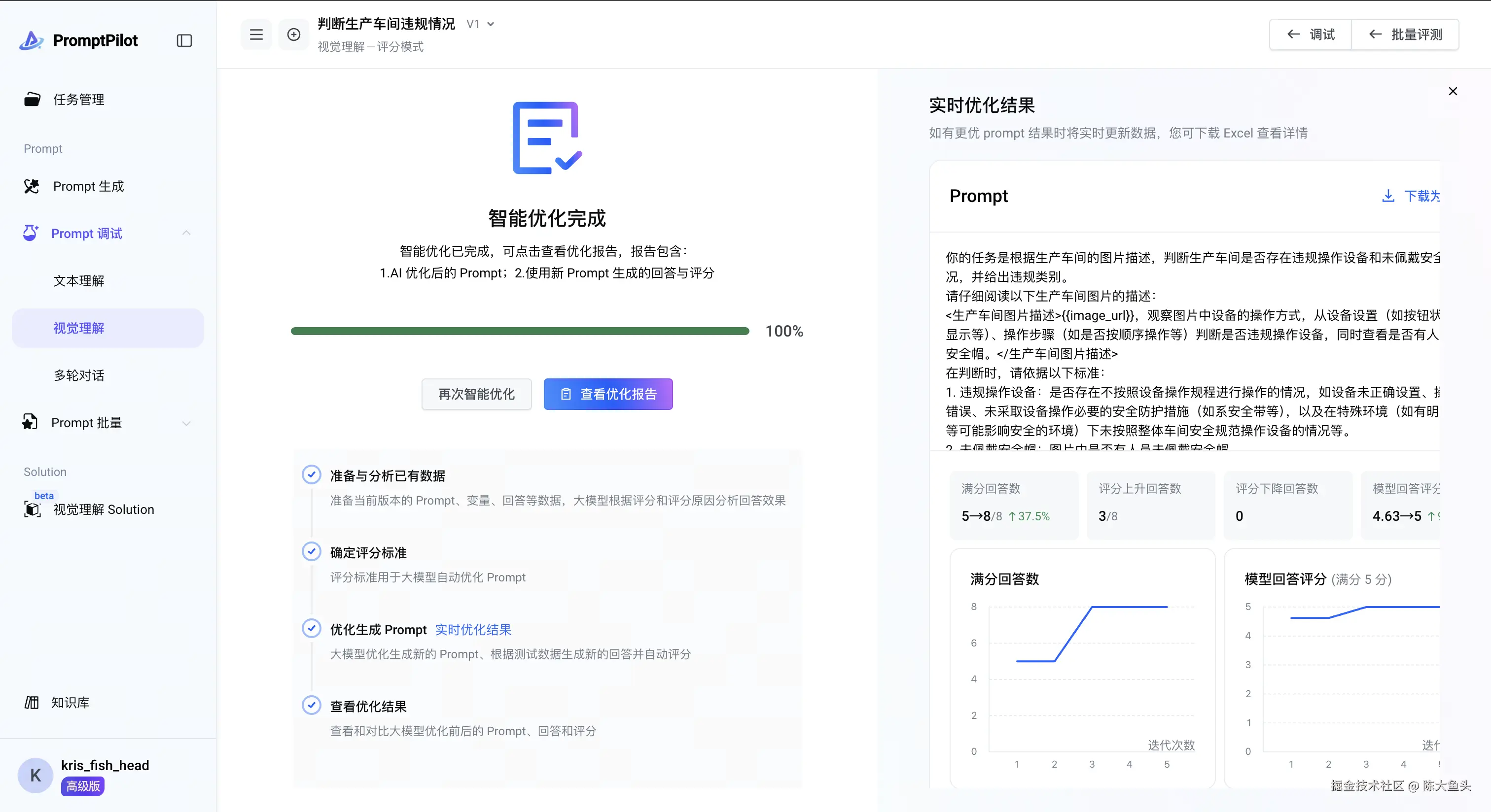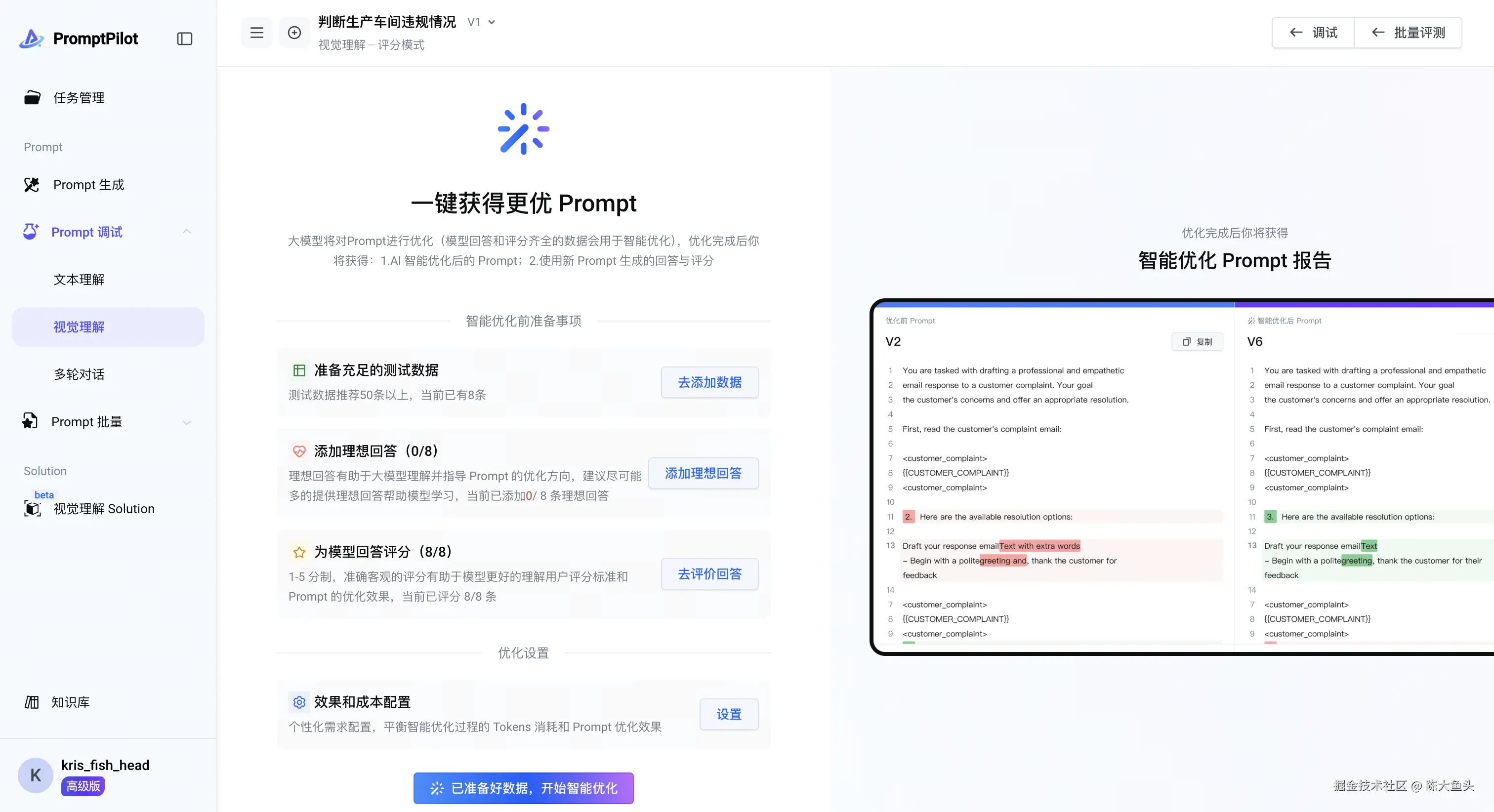 智能优化功能可自动迭代 Prompt,适配多模态与复杂场景,一站式能力领先同类工具。