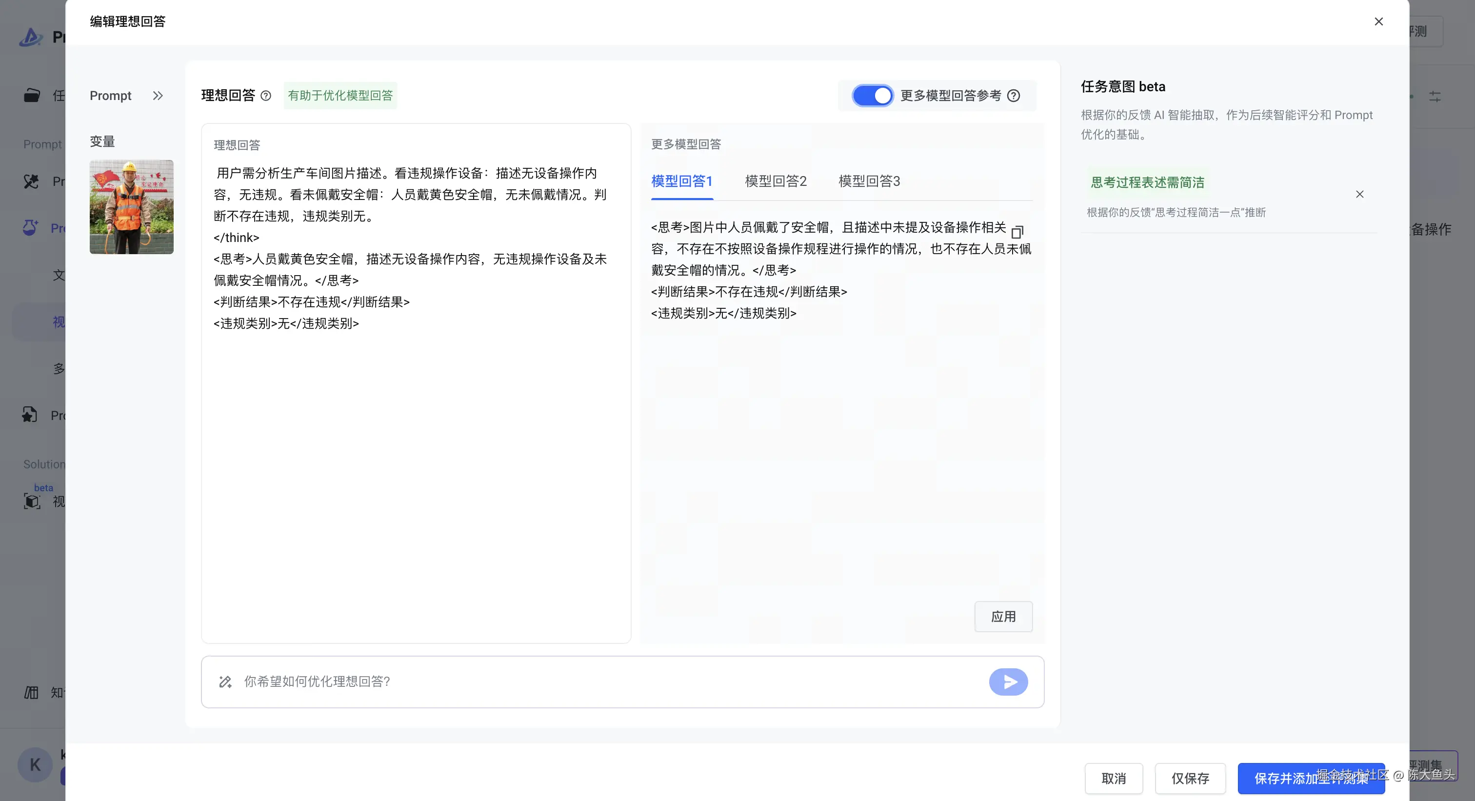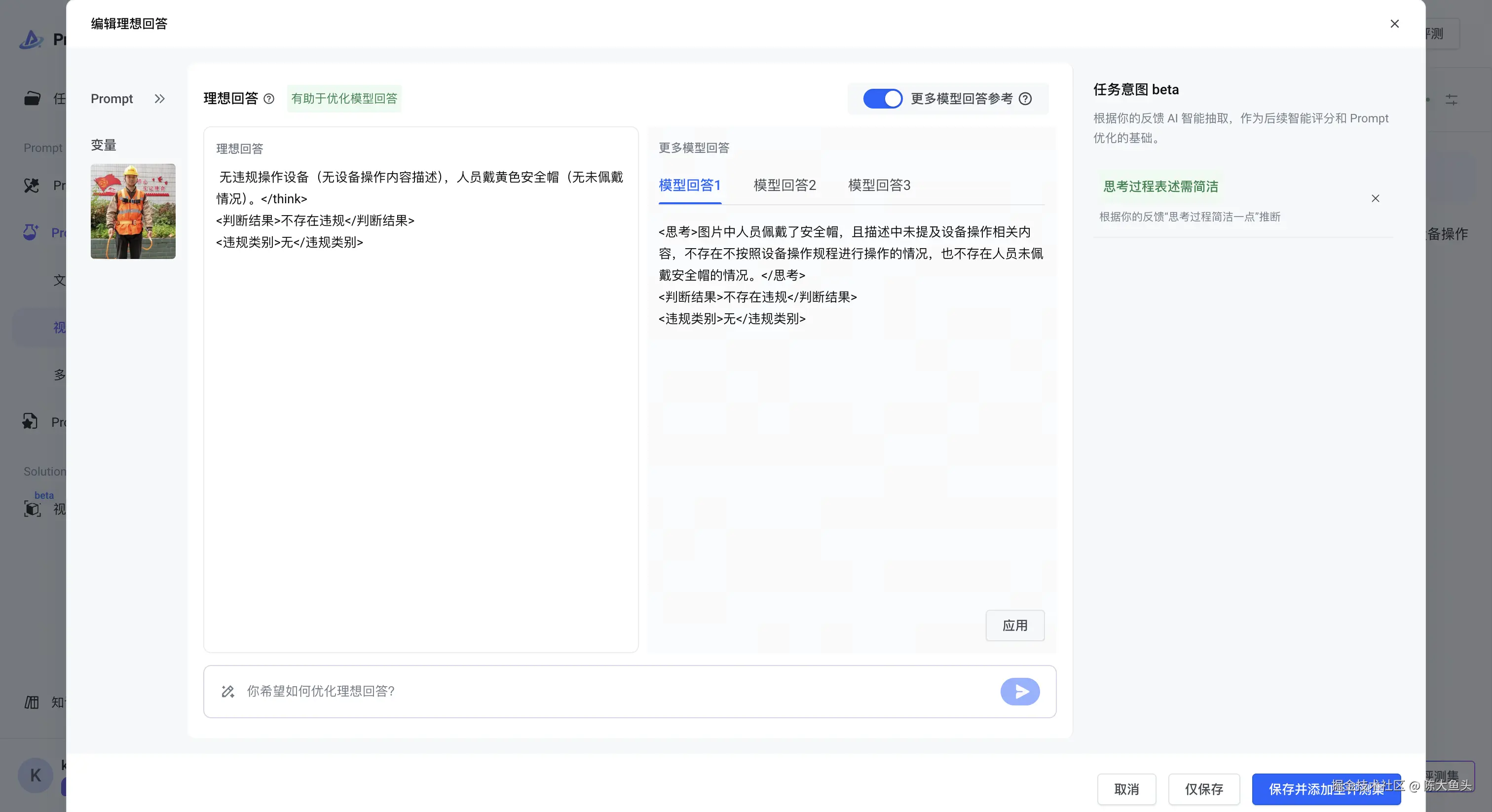 还行,那就快到我的碗里来吧。这时候我们可以点击"保存并添加至评测集"来把结果保存起来。