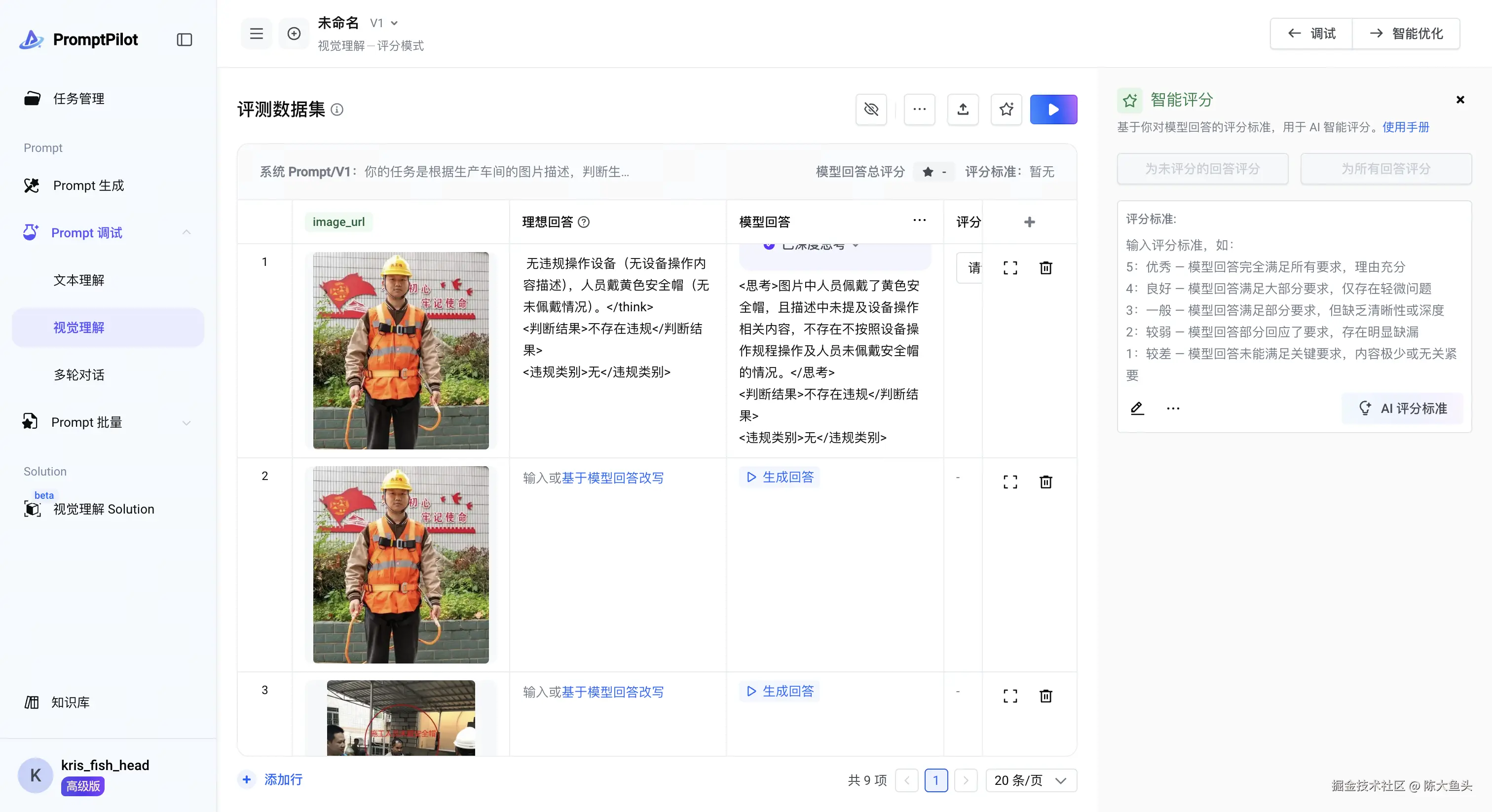 覆盖 Prompt 生成、调试、评测、优化全生命周期,支持单 case 验证与批量数据处理。