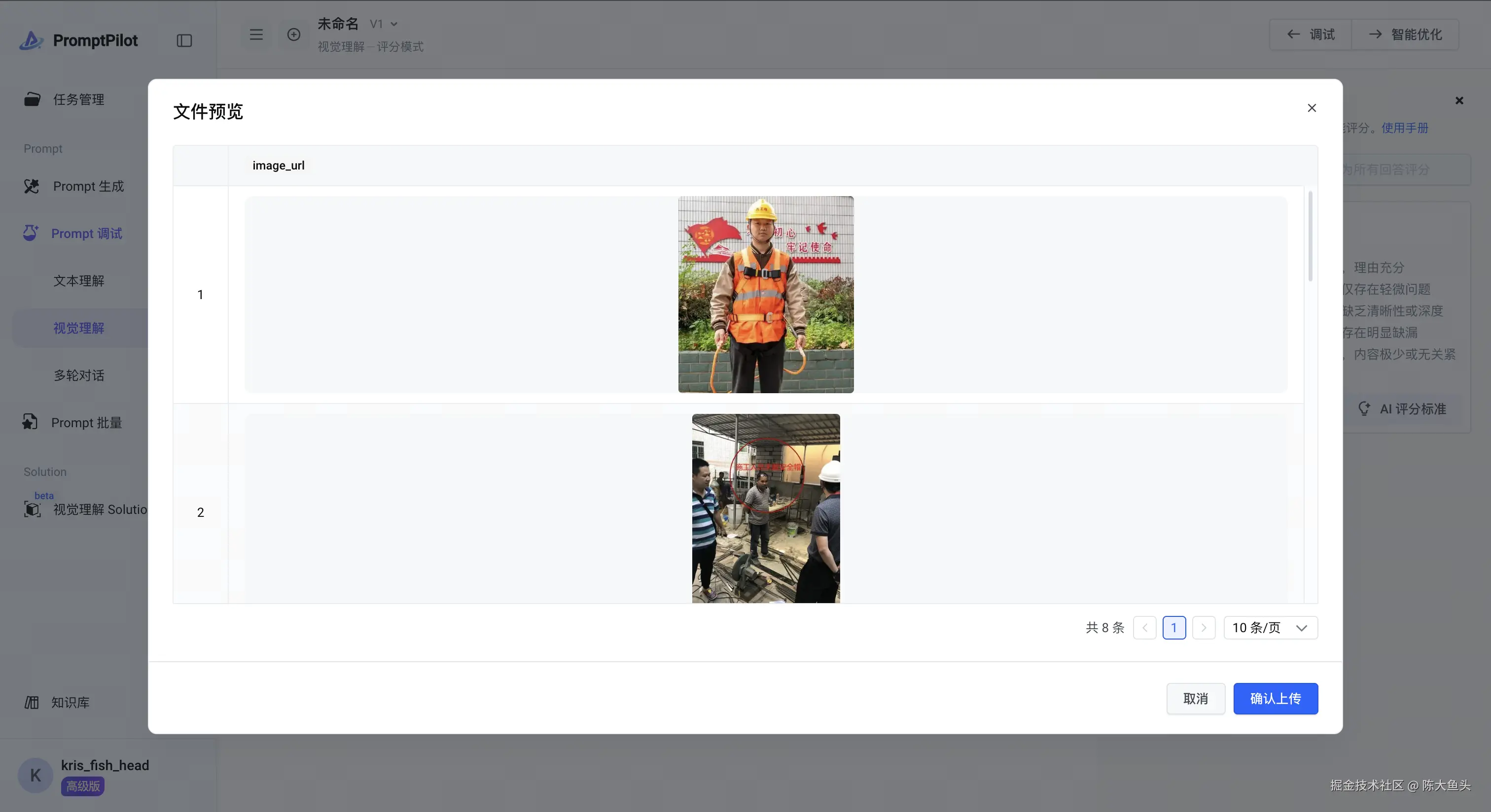 不过这里要注意的是:表格文件的表头字段一定要跟前面 Prompt 设置的变量字段一致,这里我用的是 image_url。