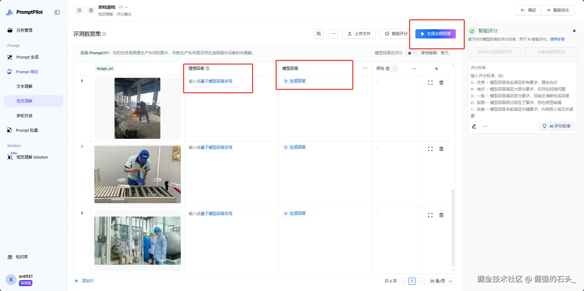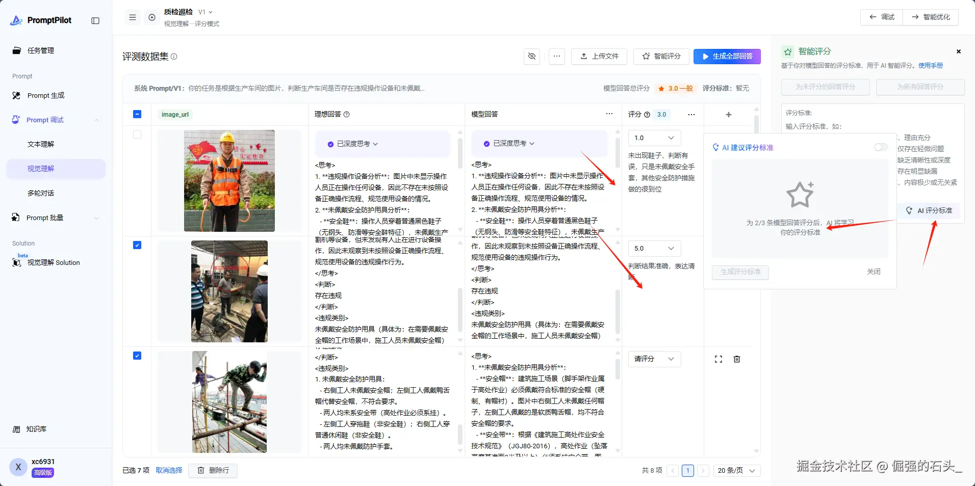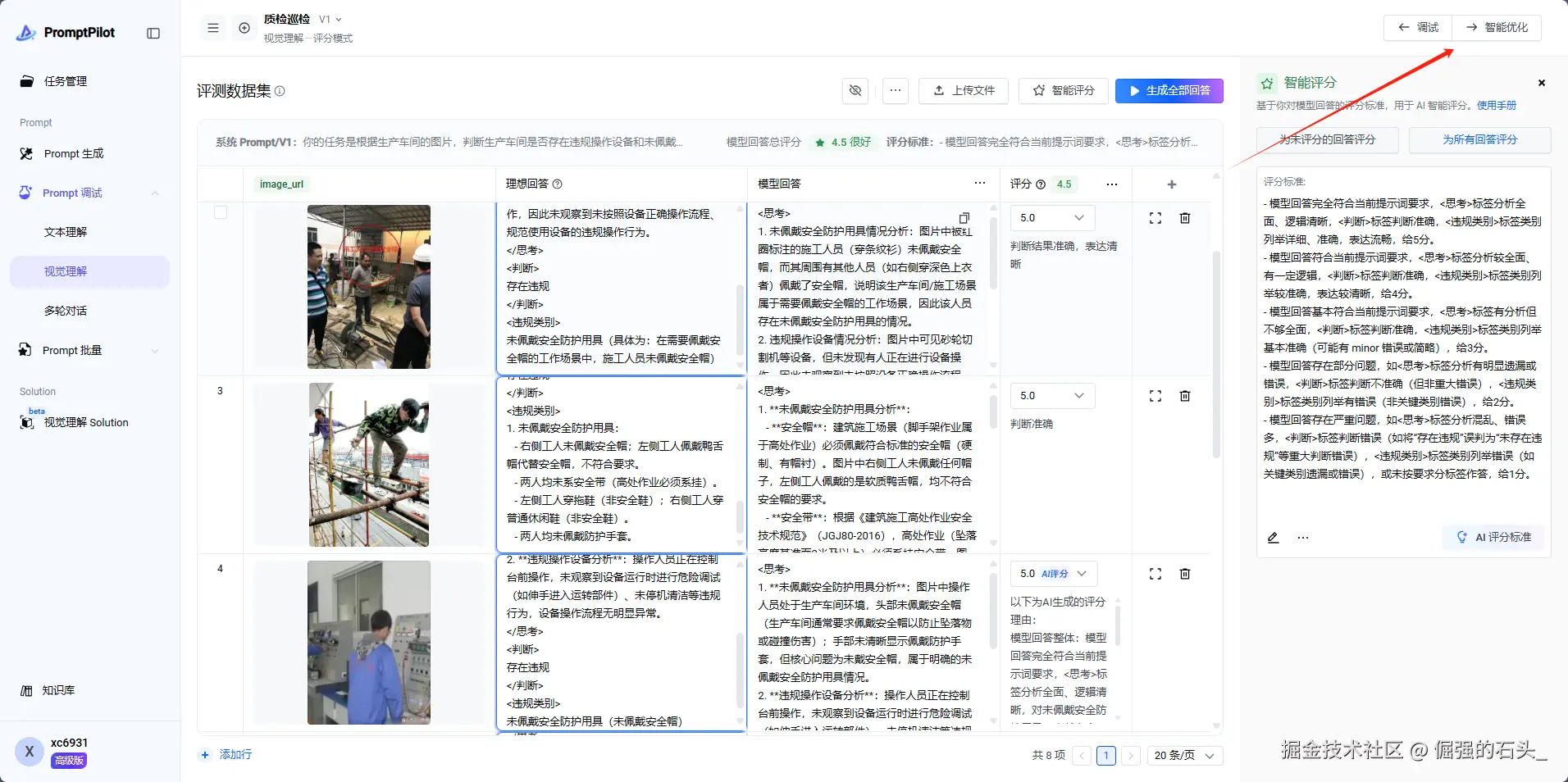 - 智能调优系统:基于历史生成数据自动优化指令,支持AI智能评分与人工标注结合
