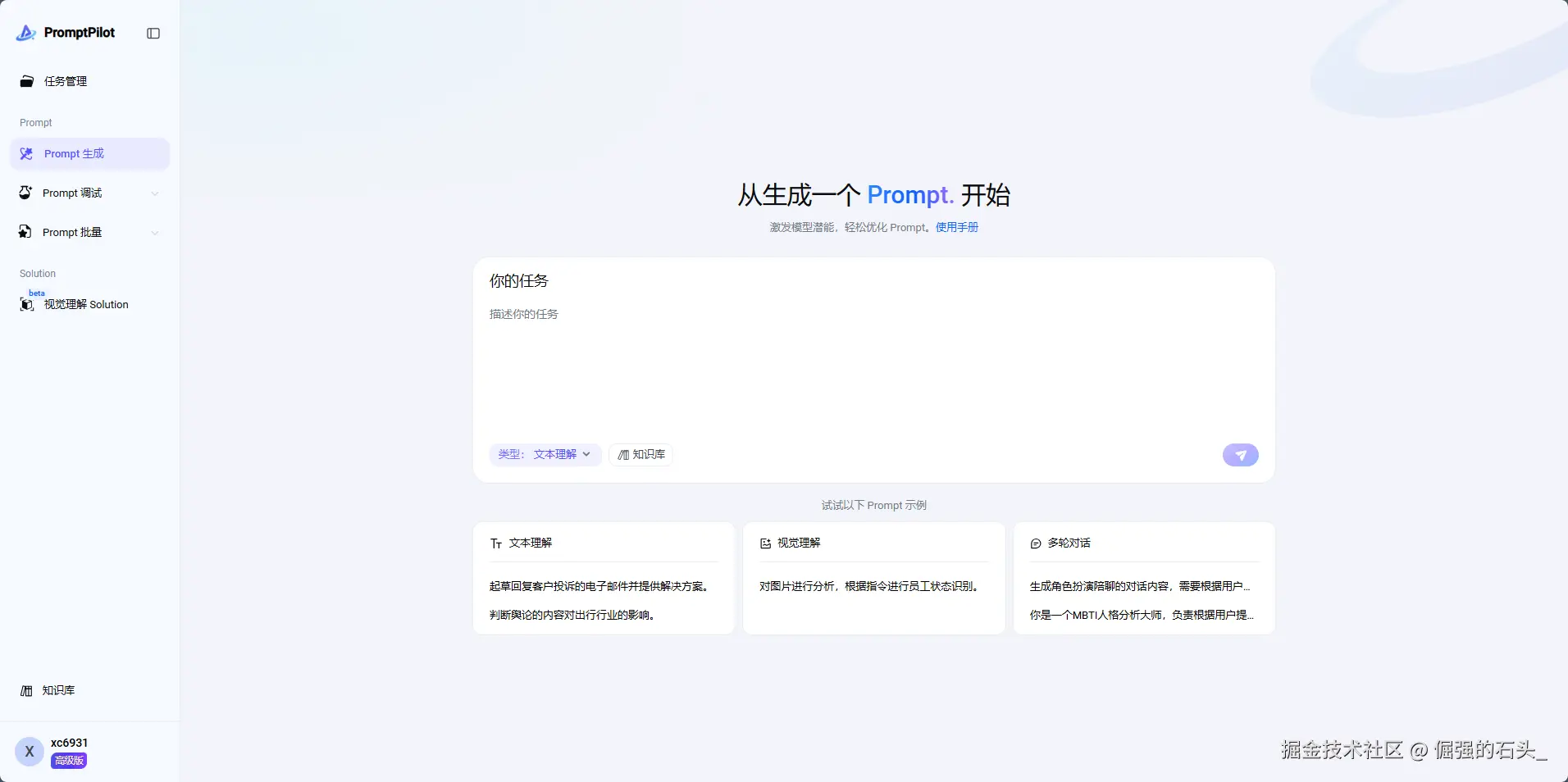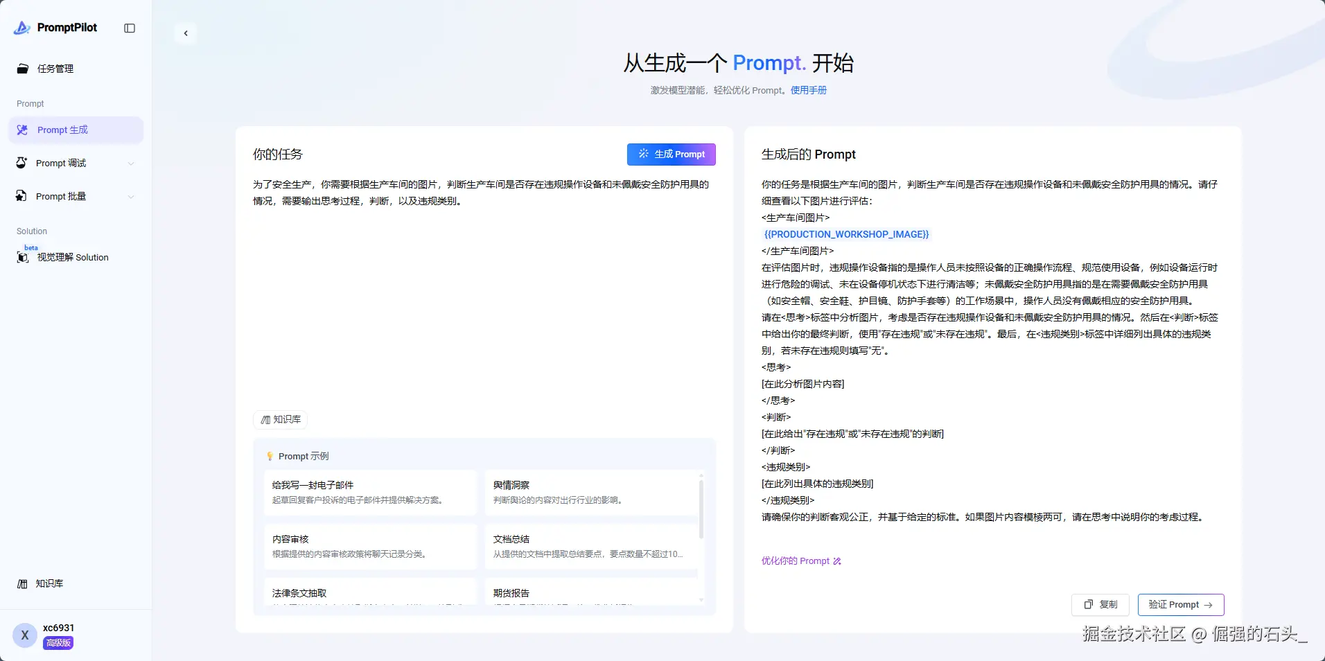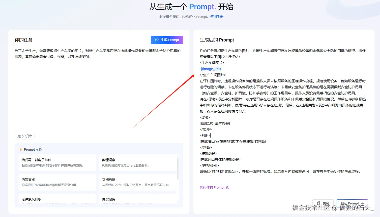 - 知识库集成:可导入行业术语库生成专属提示词模板