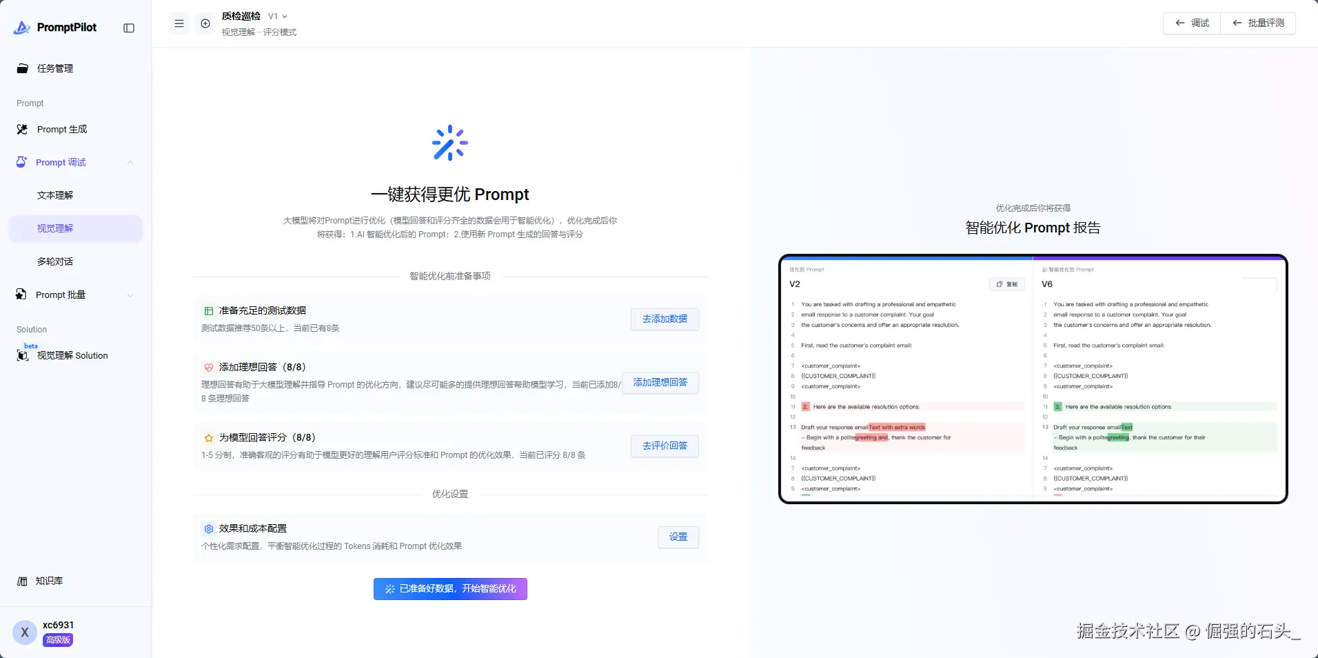 - 批量处理引擎:可同时管理100+提示词评测集,支持Excel格式导出