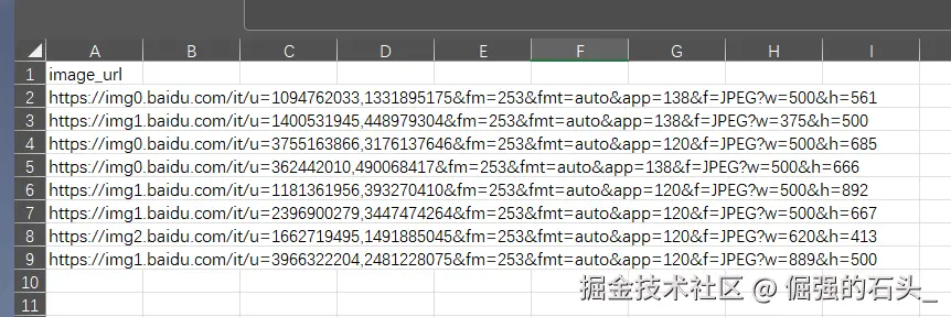 注意:excel的数据格式,必须将数据都放在第一列,并且列名为image _url