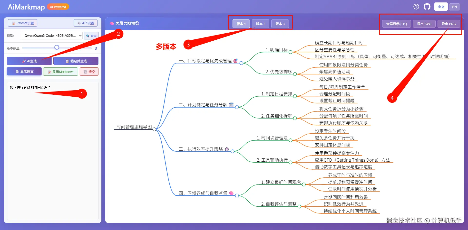 下载安装使用实操示例可参考:开源AI小工具Ai-Markmap:一键生成思维导图,帮助快速将混乱的内容转化为结构化知识