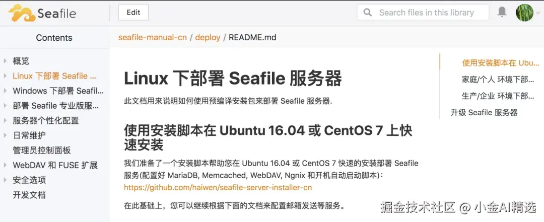 Seafile 不仅具备传统网盘的文件同步和共享功能,还通过 AI 技术实现了文件属性的自动生成和管理,提供了全新的自动化文件管理体验。